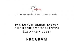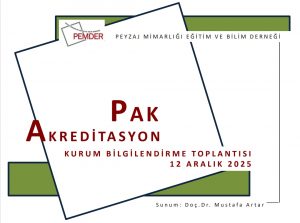 2025 yılında PEMDER’e değerlendirme ve akreditasyon başvurusunda bulunmayı düşünen ya da PEMDER akreditasyonu hakkında bilgi edinmek isteyen üniversitelere yönelik bilgilendirme toplantısı 15 Kasım 2024 tarihinde çevrim içi olarak gerçekleştirildi. Toplantıya Akdeniz, Artvin Çoruh, Aydın Adnan Menderes, İzmir Demokrasi, Kahramanmaraş Sütçü İmam, Karadeniz Teknik, Kastamonu, Niğde Ömer Halisdemir, Ordu, Sakarya Uygulamalı Bilimler, Süleyman Demirel ve Trakya üniversitelerinden dekan, dekan yardımcıları, bölüm başkanları ve öğretim üyeleri katılmıştır.